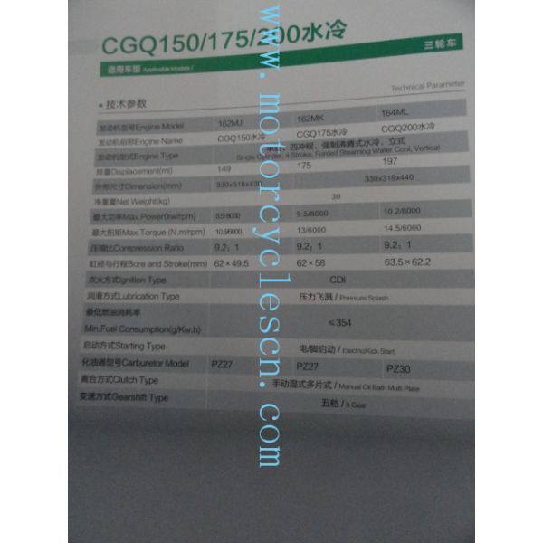 162MJ CGQ150/175/200 Single cylinder Steaming water cool Three Wheels Motorcycles Engines Images |